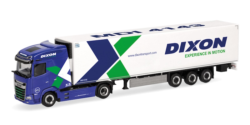 Der in Irland ansässige Transportriese Dixon ist mit seinen Fahrzeugen auch vermehrt auf dem Europäischen Festland unterwegs. Dieser DAF XG Kühlkoffer-Sattelzug ist bereits das dritte Modell des Spediteurs aus St. Margaret's. Das Modell ist limitiert.