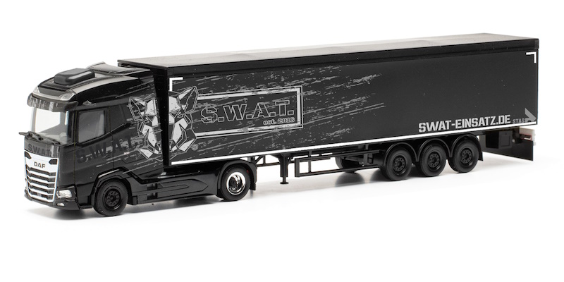 Die Abkürzung "S.W.A.T." steht eigentlich für „Special Weapons And Tactics“. Nicht aber bei diesem Eyecatcher aus dem thüringischen Rodeberg (Struth). "Schieben, Walzen, Agrar, Transport" ist hier angesagt. Der Agrardienstleister ist deutschlandweit unter anderem mit diesen schlichten, aber sehr schönen DAF XG Schubbodenaufliegern unterwegs.
