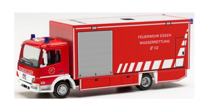 Der bei der Essener Feuerwehr einst als Löschrettungsfahrzeug eingesetzte Mercedes-Benz Atego wurde einem neuen Einsatzzweck zugeführt. Mit neuer Gestaltung versieht er nun in Burgaltendorf bei der Wasserrettung seinen Dienst.