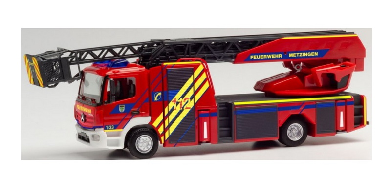 Die in 2019 von der Metzinger Feuerwehr neu beschaffte Drehleiter ist analog dem Mercedes-Benz Sprinter sehr markant und auffällig dekoriert.