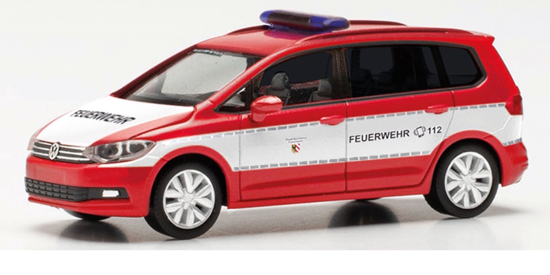 Die Serie an Fahrzeugen der Feuerwehr in Nürnberg wird mit diesem VW Touran II fortgesetzt. Gleich mehrere baugleiche Fahrzeuge laufen als Kommandowagen in verschiedenen Wachen. Das Modell wurde aufwändig mit vielen Drucken veredelt.