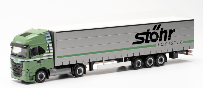 Herpa setzt den neuen Iveco S-Way LNG mit einem neuen 15-Meter Gardinenplanen-Auflieger als Miniaturmodell um.