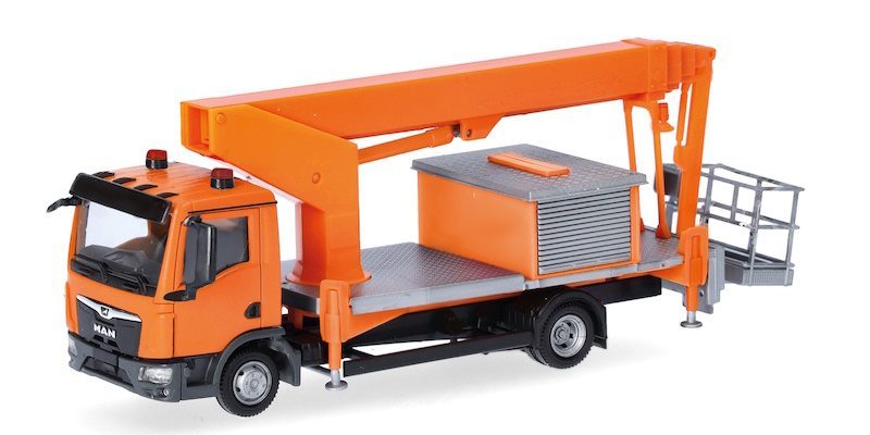 Die TK310 LKW-Arbeitsbühne von Ruthmann-Steiger ist nun bereits seit über 20 Jahren im Formenfundus und erscheint nun mit der aktuellen MAN-Kabine und dem Werkzeugkasten.