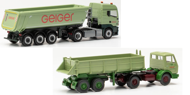 und Mercedes-Benz Baukipper-Sattelzug (Wiking-Modell)
