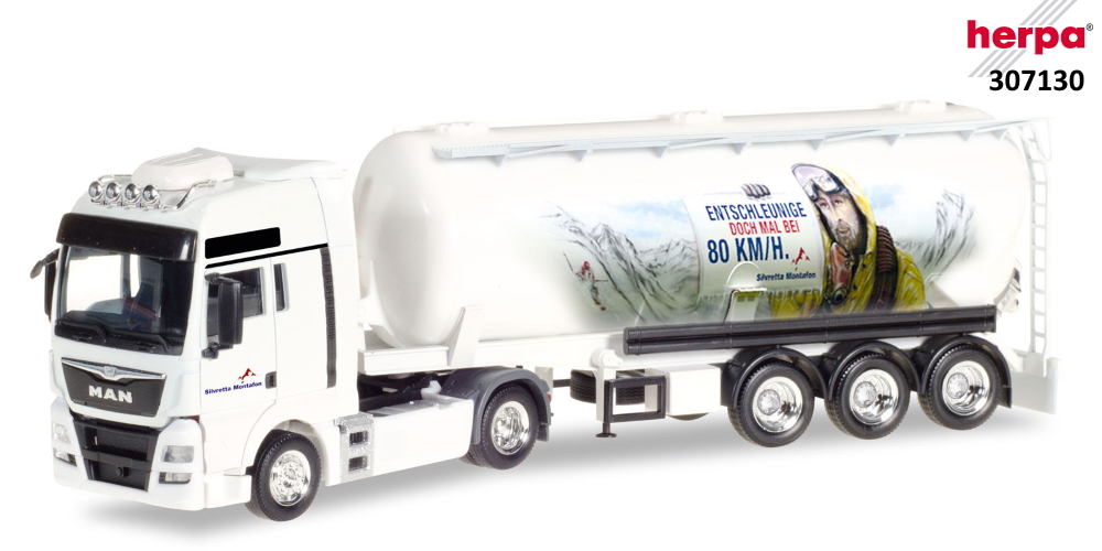 Hersteller-UVP 49,94 € https://www.herpa.de/de/Miniaturmodelle/man-tgx-xxl-silo-sattelzug-silo-melmer-montafon-a-307130?key=307130+&__src=search&__pos=1