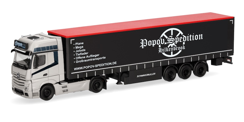 Mercedes-Benz Actros L Gigaspace Gardinenplanen-Sattelzug "Popov Spedition"