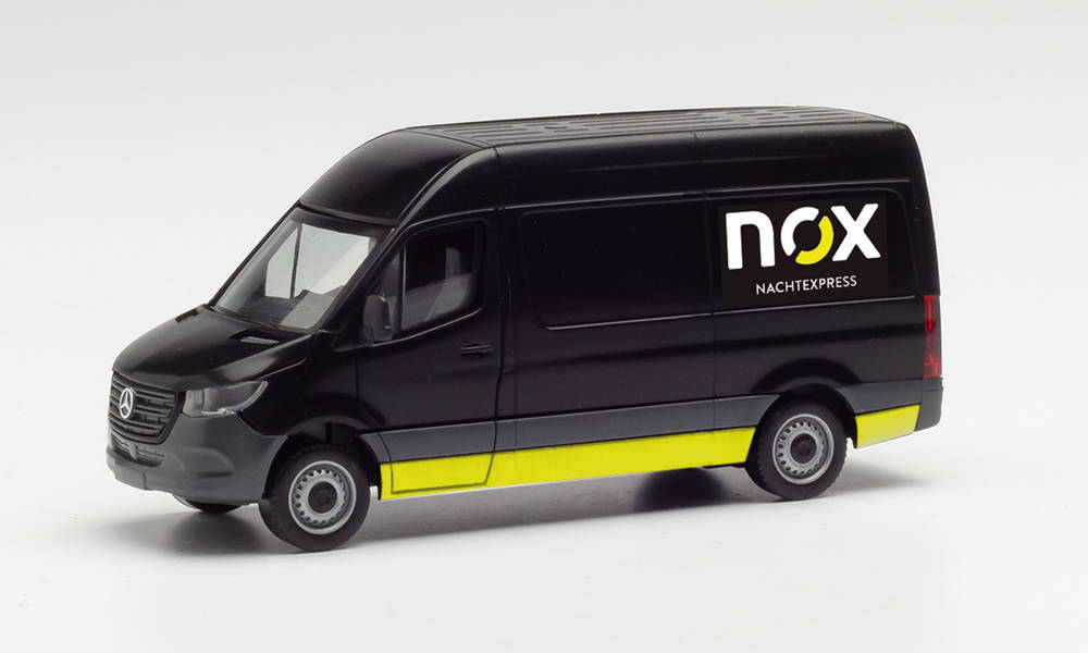 Über Nacht transportiert NOX in Mittel-, Ost- und Nordwesteuropa dringend benötigte Ersatzteile zum entsprechenden Kunden. Die mit leuchtend gelber Beschriftung gestalteten Fahrzeuge fahren in schwarzer Grundfarbe.