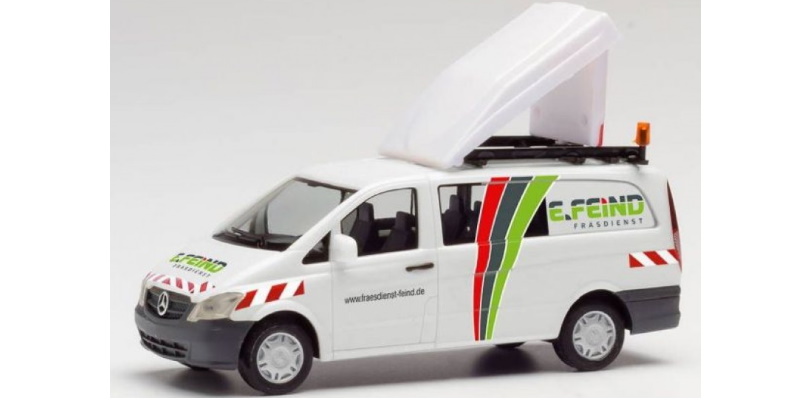 Die Firma Enrico Feind aus dem brandenburgischen Lübben ist im Bereich Straßenbau und Frästechnik tätig. Zur Transportbegleitung der Wirtgen-Fräse wird dieser Mercedes-Benz Vito mit BF3-Aufbau eingesetzt.
