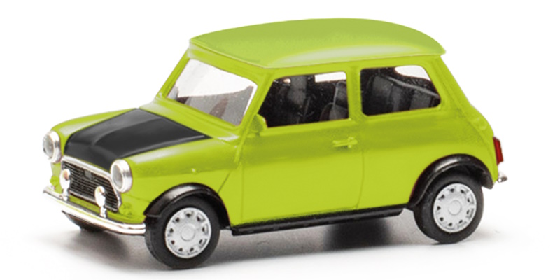 Nur ein Rechtslenker ist bei Herpa im Sortiment. Selbstverständlich muss es hier ein Mini mit britischem Understatement sein. Dieser Mayfair mit zweiteiligem Grill sowie zwei Zusatzscheinwerfern auf der Stoßstange erscheint "very british" in hellem grün mit schwarz abgesetzter Motorhaube.