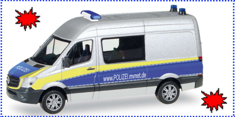 Hersteller-UVP 22,95 €: https://archiv.herpa.de/Mercedes-Benz-Sprinter-Halbbus-Polizei-Mecklenburg-Vorpommern/093088
