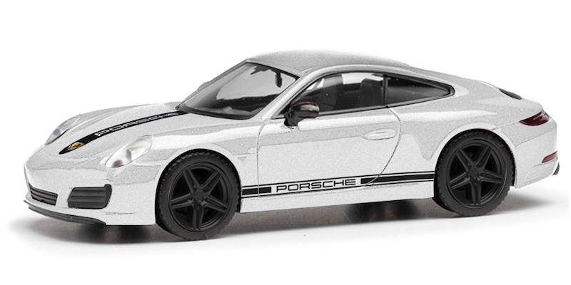 Die drei Zuffenhausener Porsche 911 (der Baureihe 991) strotzen vor Kraft. Nach gängigeren Farben erscheint der Turbo (420358) in Verde British Racing Green, das Carrera 2 Cabrio (420365) in Lizardgrün und der Carrera 4 S (430418) in Silbermetallic. Alle drei werden mit schwarzen Außenspiegeln und Felgen sowie Dekorstreifen an den Seiten und der Frontklappe optisch stark aufgewertet.