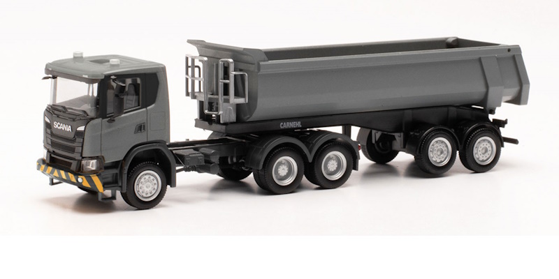 Die 6x6-Allradzugmaschine ist kombiniert mit einem 2achsigen Rundmuldenauflieger.