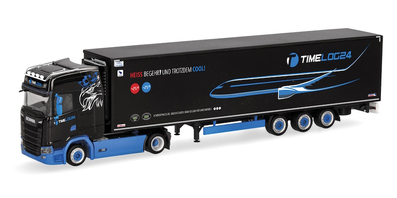 Timelog24 aus den hessischen Rüsselsheim ist ein Logistikunternehmen mit über 40 ziehenden Einheiten. Der Scania CS20 ist eine der neueren Zugmaschinen im Fuhrpark und hat einen Jumbokühlkofferauflieger gesattelt. Durch die örtliche Nähe zum Flughafen Frankfurt am Main ist man ideal gelegen für ein breites Portfolio an Transportmöglichkeiten.