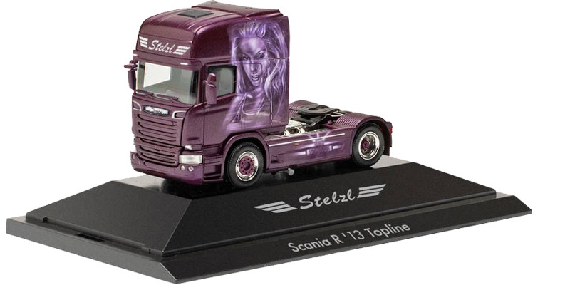 Ein Prunkstück aus den Stelzl Fuhrpark stellt das Vorbild für das Modell einer mittlerweile klassischen Scania R `13 Topline-Zugmaschine, die mit bekannten Motiven von Walter Rosner gestaltet wurde.