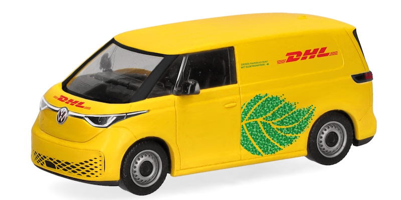 Der VW ID. Buzz ist aufwändig mehrfarbig bedruckt. Das grüne Blatt ziert Fahrzeuge die in Ihrer CO²-Emmission stark reduziert oder bei 0 liegen. DHL wurde 1969 gegründet, nur wenige Monate nachdem Neil Armstrong auf dem Mond gegangen ist. DHL beruht auf den Anfangsbuchstaben der Nachnamen der "Gründungsväter" Adrian Dalsey, Larry Hillblom und Robert Lynn. Zunächst wurden persönlich Frachtdokumente mit dem Flugzeug von San Fransisco nach Honolulu befördert, um die Verzollung von Schiffsfrachten auf See vor der eigentlichen Ankunft zu beginnen und die Wartezeit im Hafen somit erheblich zu reduzieren. Erst zehn Jahre später wird der Service um die Paketzustellung erweitert.