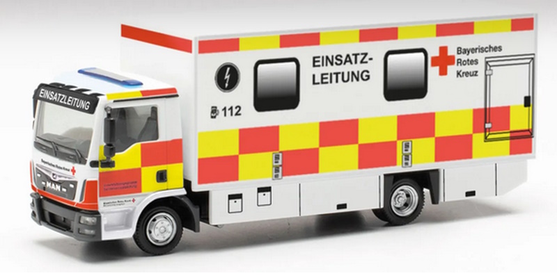 Beim Bayerischen Roten Kreuz in Nürnberg ist dieser Einsatzleitwagen mit karierter Bauchbinde beheimatet.