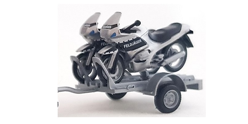 2 BMW Motorräder Feldjäger Krad auf Anhänger BW Military Police Militärpolizei