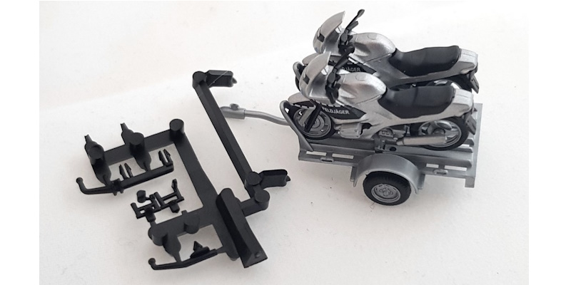 Anhängerkupplungen für Zugfahrzeuge liegen bei. Motorräder können einzeln oder auf dem Trailer fixiert verwendet werden.