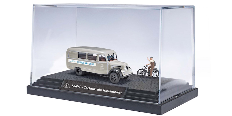 MAW Werke mit Hilfsmotorfahrer auf Sockel, Bj. 1957