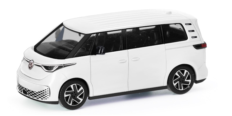 Der neue VW ID. Buzz bewegt sich seit zwei Jahren auf Deutschlands Straßen und das vollelektrisch. Optisch angelehnt an den VW T1, wird so ein neues Zeitalter für die Transporter eingeläutet. Von Mai 2022 bis Jahresende 2023 wurden in Deutschland bereits 6.395 Zulassungen verzeichnet. In aufwändiger Konstruktion und fein abgestimmtem Formenbau realisiert Herpa den Transporter gewohnt detailliert. Sowohl das vordere als auch das hintere Lichtband mit Scheinwerfern, bzw. Rückleuchten transparent ausgeführt und mit Details bedruckt. Die zweifarbigen Felgen runden das Gesamtbild ab. Zunächst ist das Modell in Candyweiß und Starlightblue, sowie einer Feuerwehrvariante erhältlich.