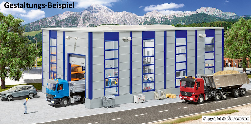 Die beiden Rolltore sind für das motorische Rolltor von Viessmann, Art. 5172 vorbereitet. Sie sind vormontiert und zum manuellen Aufrollen geeignet. Das Dach ist abnehmbar. Mit Fundament.