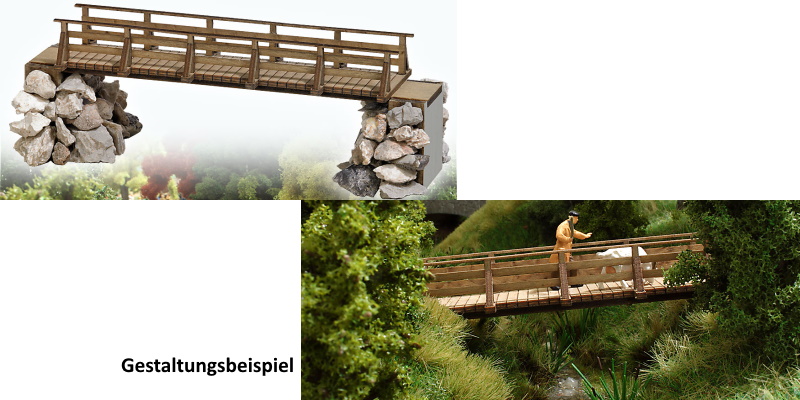 Holzbrücke,Geröllsteine (Bausatz/Kit) 113 x 27 x 45mm