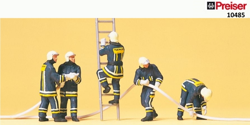 Feuerwehrmänner in moderner Einsatzkleidung. Löschangriff / Set mit 5 Figuren