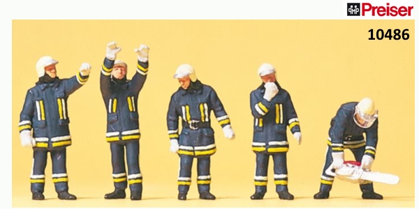 5 Feuerwehrmänner in moderner Einsatzkleidung. Technische Hilfeleistung