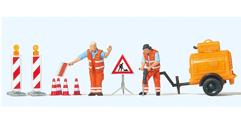 2 Straßenbauarbeiter mit Kompressor und Zubehör, siehe Foto