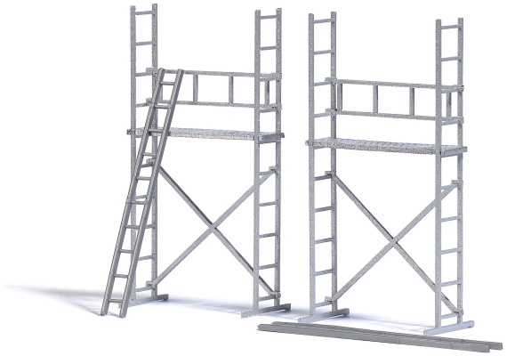Bausatz für 2 moderne Leitergerüste mit Anlegeleitern. Größe jeweils: 31 x 8 mm, Höhe: 59 mm