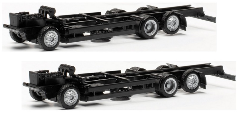 Um gleich zehn Artikel wird der Teileservice erweitert und bietet Um- und Selbstbauern die Möglichkeit Ihr eigenes Fahrzeuge selbst zu gestalten. Die beiden neuen Fahrgestelle für Volumentandemhänger (neue Achsspange, neuer Unterfahrschutz sowie separat gehaltene Kotflügel) sind bereits dabei, passend zum Fahrgestell der Festaufbauten werden auch die Volumenaufbauten unter neuer Artikelnummer (085564 Plane für Motorwagen und 085557 Plane für Hänger) mit aufgenommen. Die Aufbauten für die Wechselbrücken sind unter 081146 verfügbar. Damit die Hänger nicht alleine laufen müssen, gibt es Motorwagen-Fahrgestelle für Scania CR/CS (085571), Mercedes-Benz Actros Giga-/Big-/Streamspace (085588), MAN TGX GX/GM und TGS TM/TN (085595) und Volvo FH Generation 4 und 5 (085601). Mit 085618 ist nun auch die GM-Kabine von MAN für LKW verfügbar. Mit 085625 kann man ab sofort auch den Iveco S-Way ohne Windleitbleche für LKWs verwenden.