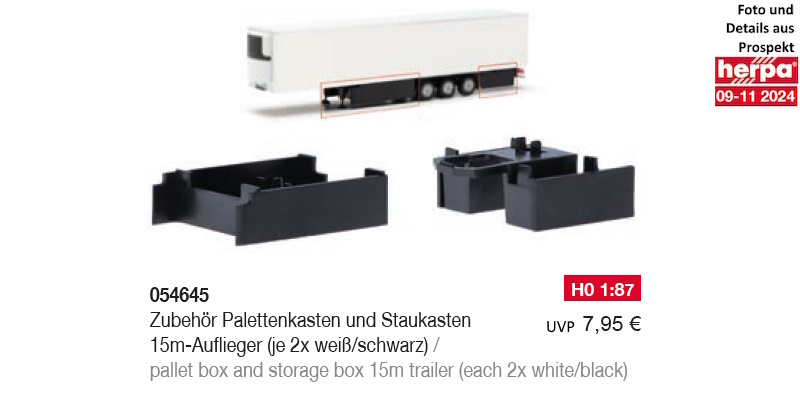 Ein neuer Palettenkasten wird nun mit passendem Staukasten für die neuen 15-Meter LKW-Auflieger auch im Zubehör angeboten. Enthalten sind jeweils zwei Stück in Schwarz und Weiß.