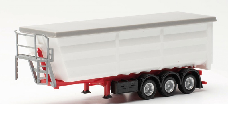 Nach Vorbild des Kempf SKM 35/3 erscheint dieser Stahlrundmuldenauflieger und ergänzt das neutrale Aufliegersortiment mit rotem Fahrgestell.
