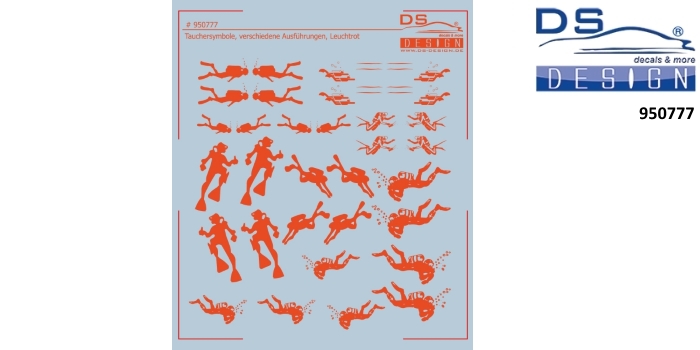Es handelt sich hier um ein im Siebdruckverfahren hergestelltes Decal mit leuchtroten (ähnlich RAL 324) Tauchersymbolen in verschiedenen Ausführungen.