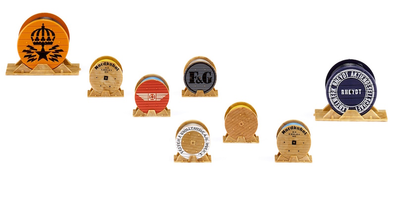 Wenn es um das Zubehör geht, besitzen WIKING-Freunde durchaus ein besonderes Faible. Das gilt auch für die Kabeltrommeln, die einst auf dem kubischen Mercedes-Benz-Lkw und später auf dem Magirus-Tieflader-Sattelzug ins Programm rollten. Danach folgten immer wieder modellbauerische Begegnungen, die Lust auf mehr machen. Das wird jetzt nach authentischen Vorbildherstellern ergänzt. Die Zubehör-Packung mit den Kabeltrommeln ist auch deshalb so besonders, weil die kreisrunden Flanken zeitgenössische Absender tragen. So sind im Zubehör-Set die Firmen Felten & Guilleaume A.G. aus Wien, kurz F & G, Nordkabel Berlin oder Rheydt Kabelwerke AG zu finden. Mit dabei ist auch die Kabeltrommel-Nachbildung in den Farben der staatlich norwegischen Telefon- und Telegrafendienste Televerket. WIKING-Sammler werden ebenso wie Modellbahner ziemlich schnell Verwendung für die technischen Accessoires finden. Kabeltrommel 1: Kabeltrommelhalter und -seitenteile braunbeige, Kabeltrommelrolle silber, mausgraue Fläche bedruckt mit schwarzem Logo „F & G“. Kabeltrommel 2: Kabeltrommelhalter und -seitenteile braunbeige, Kabeltrommelrolle silbergrau, mit weiß-schwarzer Firmenbedruckung „Felten & Guilleaume A.G. Wien. X.“. Kabeltrommel 3: Kabeltrommelhalter braunbeige, Kabeltrommelrolle himmelblau, Seitenteile mit lachsroter Flächenbedruckung und perlweißem Firmenzeichen „SJ“ inklusive Schwinge. Kabeltrommel 4: Kabeltrommelhalter und -seitenteile braunbeige, Kabeltrommelrolle himmelblau, Bedruckung schwarz „Nordkabel & NK 28 Berlin 89124“ sowie Druck Schraubenknöpfe & Achslager. Kabeltrommel 5: Kabeltrommelhalter und -seitenteile braunbeige, Kabeltrommelrolle ginstergelb, mit schwarzer Bedruckung „Nordkabel & NK 28 Berlin 89124“ sowie Schraubenknöpfe & Achslager. Kabeltrommel 6: Kabeltrommelhalter und -seitenteile braunbeige, Kabeltrommelrolle ginstergelb. Kabeltrommel 7: Kabeltrommelhalter braunbeige, -seitenteile saphirblau, Kabeltrommelrolle schwarzgrau, weiße Bedruckung „Rheydt Aktiengesellschaft Kabelwerke“. Kabeltrommel 8: Kabeltrommelhalter braunbeige, -seitenteile gelborange, Kabeltrommelrolle schwarzgrau, schwarze Logo-Bedruckung „Televerket“ mit Krone und Stern.